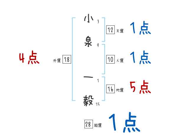 小泉一毅さんの画数の鑑定結果