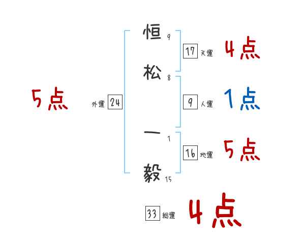 恒松一毅さんの画数の鑑定結果