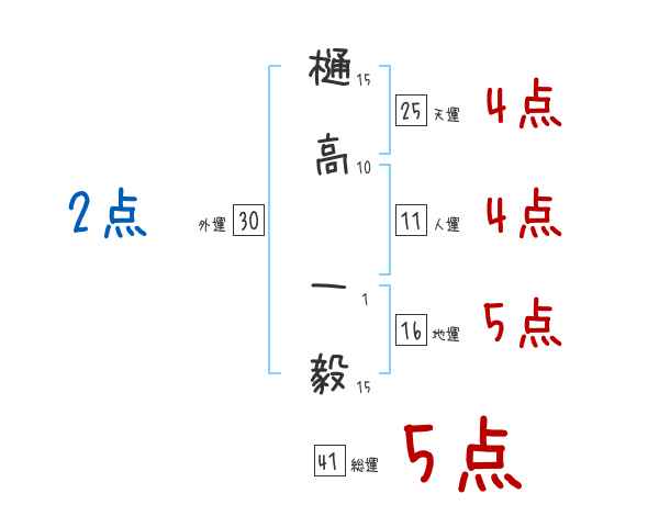 外運![]() | 樋高一毅さんの外運は30画の2つ星!浮き沈みの激しさに注意しましょう。 生活面を象徴する運勢です。外部から受ける影響力を表し、結婚運、家庭運や職場、環境への順応性を表します。 |