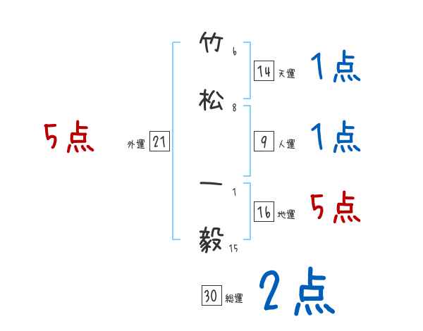 総運![]() | 竹松一毅さんの総運は30画の2つ星!浮き沈みの激しさに注意しましょう。 あなたの人生を表す1番重要な運勢です。生涯を通じて影響する総合運となり、主に50歳以降の晩年期に影響を及ぼします。 |