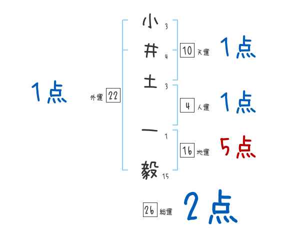 外運![]() | 小井土一毅さんの外運は22画の1つ星!努力することが苦手ないっぽう手先が器用。芸術性にも優れる。 生活面を象徴する運勢です。外部から受ける影響力を表し、結婚運、家庭運や職場、環境への順応性を表します。 |