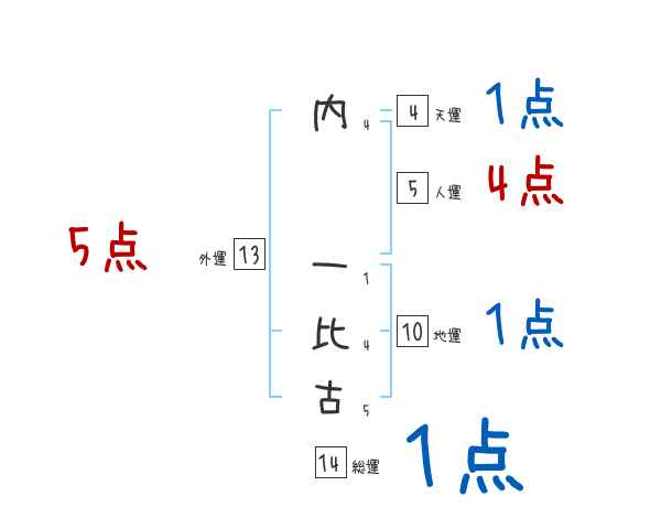 天運![]() | 内一比古さんの天運は4画の1つ星!感情が不安定で苦労するかも。周囲との協調を心掛けましょう。 家系が持つ宿命的な運勢を表します。祖先から受け継いだ苗字ですので自分の力が及びません。家柄を象徴します。 |