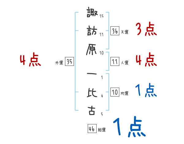 諏訪原一比古さんの画数の鑑定結果