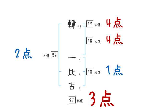 外運![]() | 韓一比古さんの外運は26画の2つ星!波瀾万丈かも。信頼できる人を大事にしましょう。 生活面を象徴する運勢です。外部から受ける影響力を表し、結婚運、家庭運や職場、環境への順応性を表します。 |