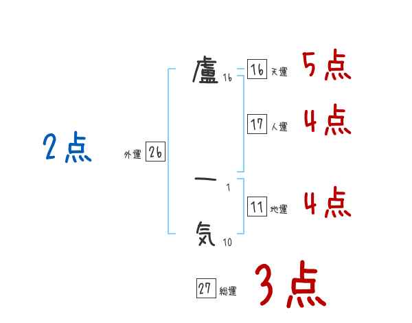 盧一気さんの画数の鑑定結果