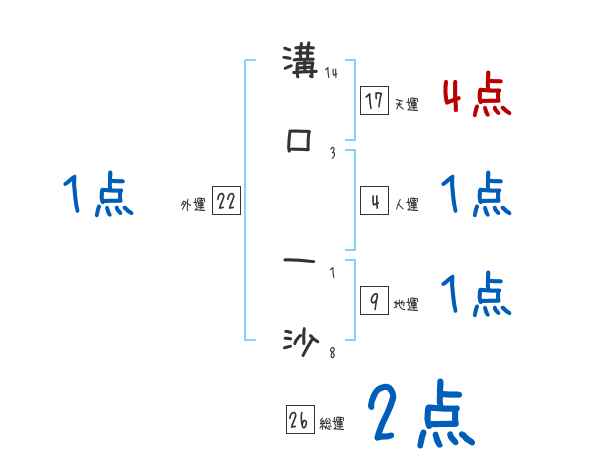 人運![]() | 溝口一沙さんの人運は4画の1つ星!感情が不安定で苦労するかも。周囲との協調を心掛けましょう。 性格や才能などを表す2番目に重要な運勢です。人間関係や協調性、社会的な成功に影響します。主に20歳から50歳ぐらいまでの中年期の運勢を表します。 |