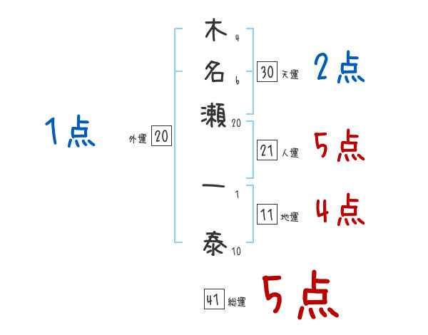 木名瀬一泰さんの画数の鑑定結果