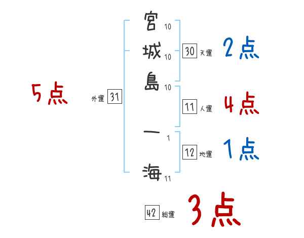 宮城島一海さんの画数の鑑定結果
