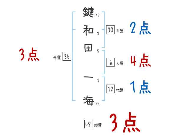 鍵和田一海さんの画数の鑑定結果