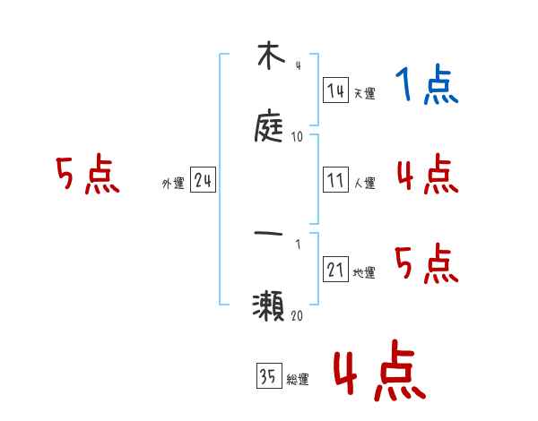木庭一瀬さんの画数の鑑定結果