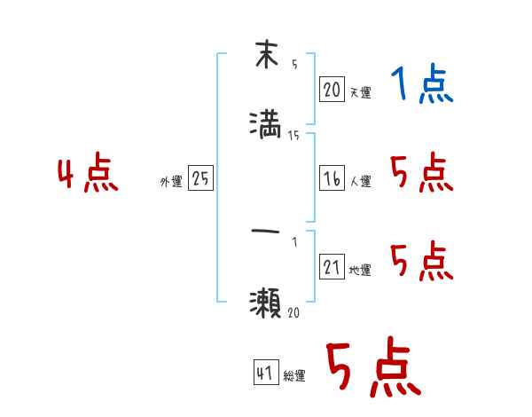 末満一瀬さんの画数の鑑定結果