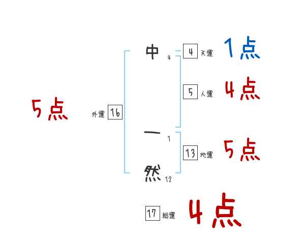 中一然さんの画数の鑑定結果