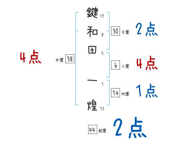 鍵和田一煌さんの画数の鑑定結果