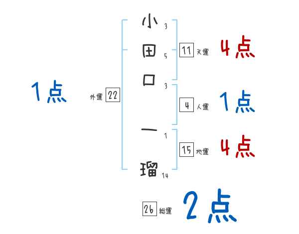 小田口一瑠さんの画数の鑑定結果