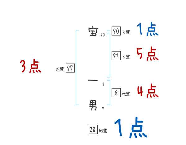 宝一男さんの画数の鑑定結果