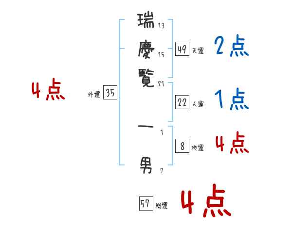 瑞慶覧一男さんの画数の鑑定結果