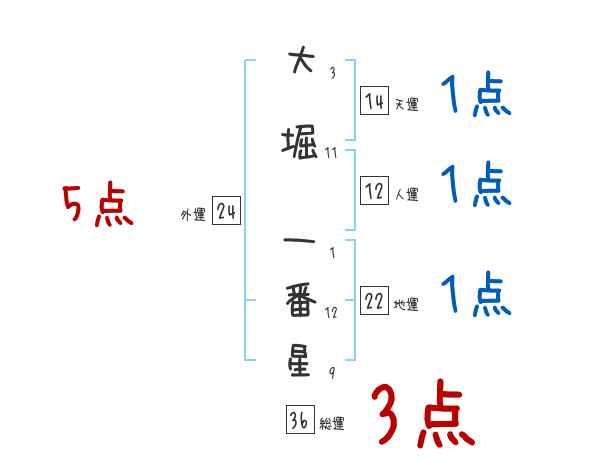 大堀一番星さんの画数の鑑定結果