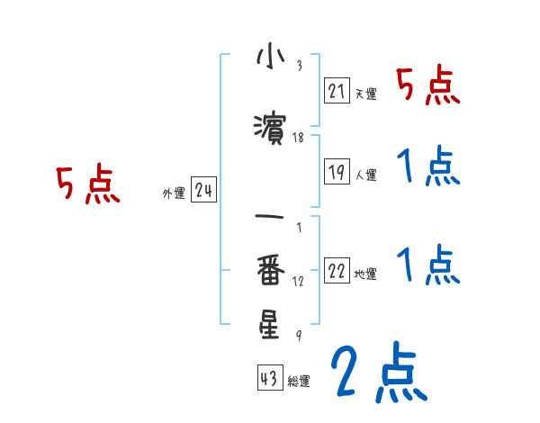 小濵一番星さんの画数の鑑定結果