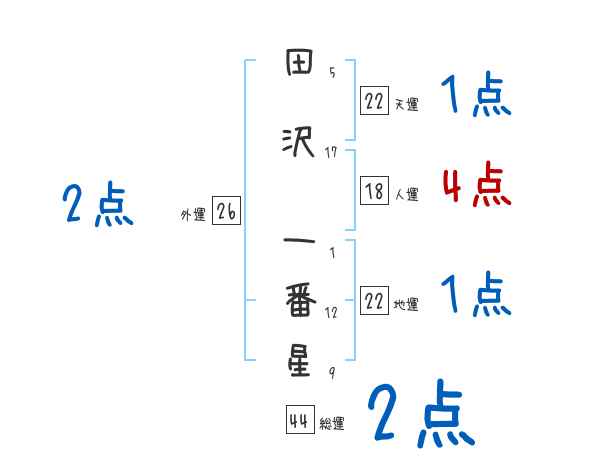 田沢一番星さんの画数の鑑定結果