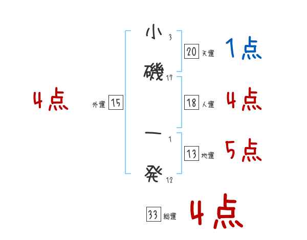 小磯一発さんの画数の鑑定結果
