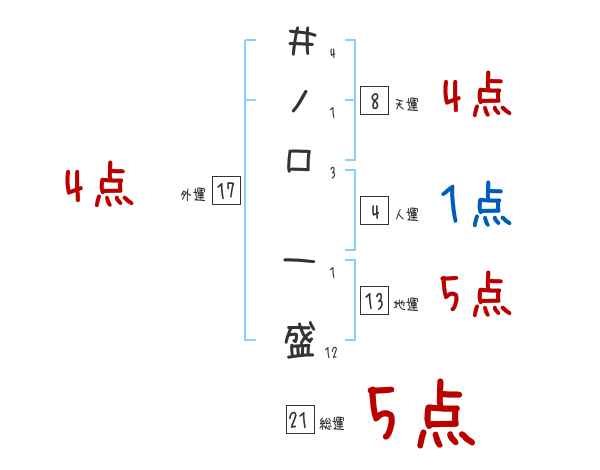 井ノ口一盛さんの画数の鑑定結果