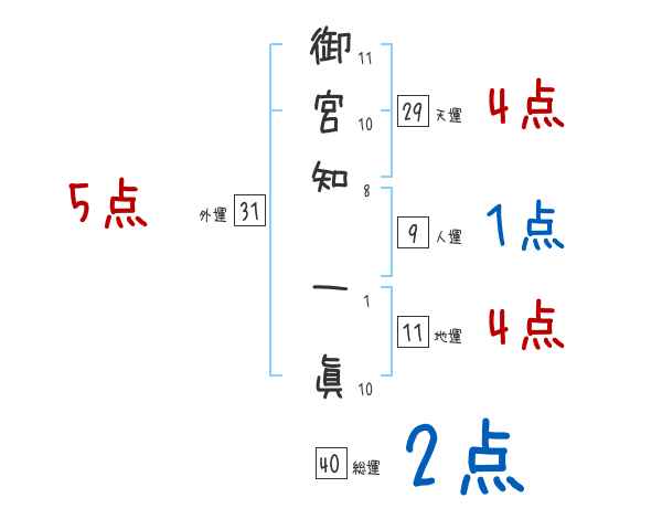 外運![]() | 御宮知一眞さんの外運は31画の5つ星!社交性があり判断力に優れる。順風満帆な人生で円満な生活。 生活面を象徴する運勢です。外部から受ける影響力を表し、結婚運、家庭運や職場、環境への順応性を表します。 |