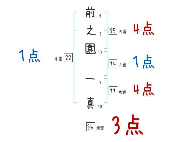 前之園一真さんの画数の鑑定結果