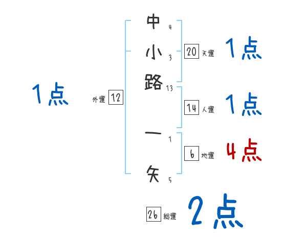 総運![]() | 中小路一矢さんの総運は26画の2つ星!波瀾万丈かも。信頼できる人を大事にしましょう。 あなたの人生を表す1番重要な運勢です。生涯を通じて影響する総合運となり、主に50歳以降の晩年期に影響を及ぼします。 |