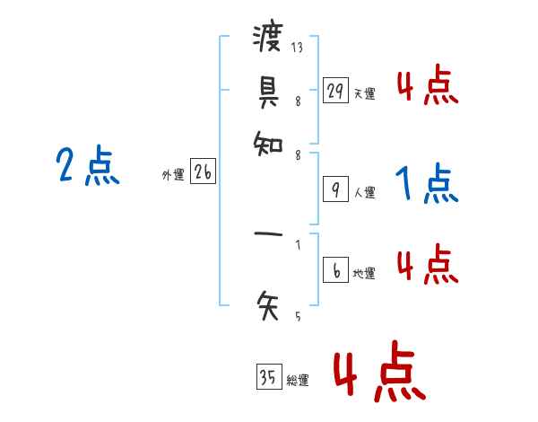渡具知一矢さんの画数の鑑定結果