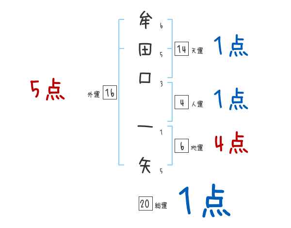 外運![]() | 牟田口一矢さんの外運は16画の5つ星!人望が厚く大きく発展する。逆転成功が見える。 生活面を象徴する運勢です。外部から受ける影響力を表し、結婚運、家庭運や職場、環境への順応性を表します。 |