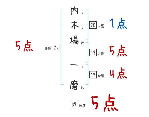 内木場一磨さんの画数の鑑定結果