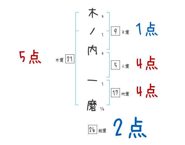 木ノ内一磨さんの画数の鑑定結果