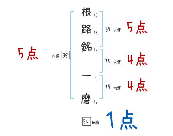 根路銘一磨さんの画数の鑑定結果