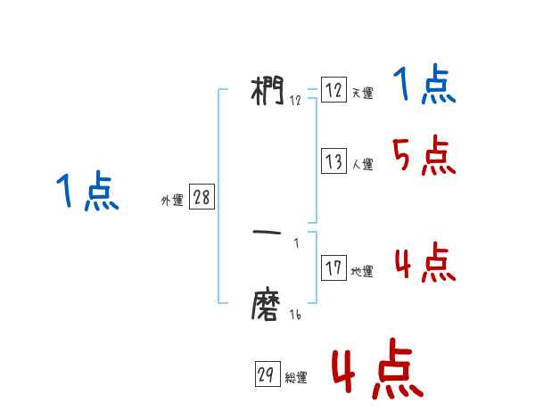 椚一磨さんの画数の鑑定結果