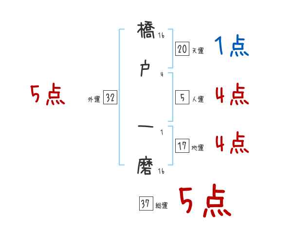 橋戸一磨さんの画数の鑑定結果