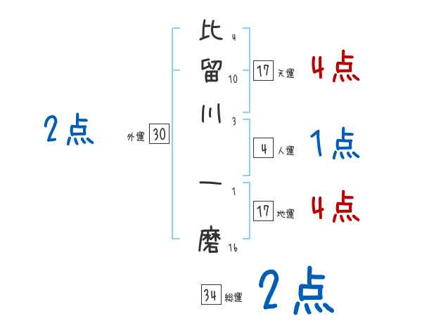 比留川一磨さんの画数の鑑定結果
