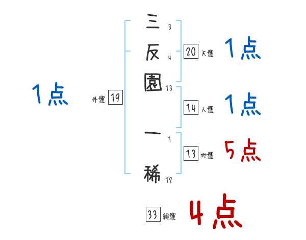 三反園一稀さんの画数の鑑定結果