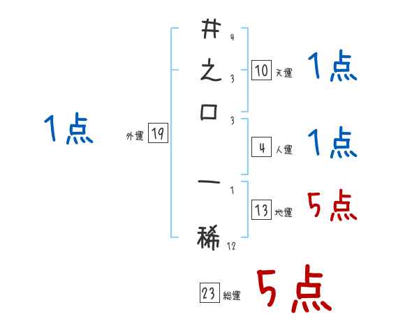 井之口一稀さんの画数の鑑定結果
