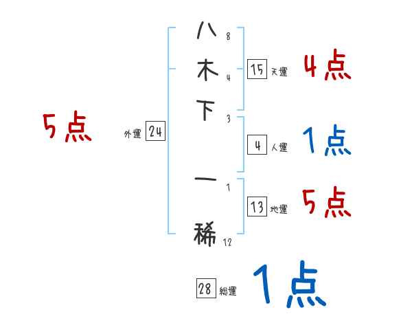 総運![]() | 八木下一稀さんの総運は28画の1つ星!家庭環境に注意。スポーツで活躍できる能力があるかも。 あなたの人生を表す1番重要な運勢です。生涯を通じて影響する総合運となり、主に50歳以降の晩年期に影響を及ぼします。 |