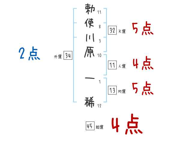 天運![]() | 勅使川原一稀さんの天運は32画の5つ星!柔軟性があり成功する。チャンスが多く金運が良い。 家系が持つ宿命的な運勢を表します。祖先から受け継いだ苗字ですので自分の力が及びません。家柄を象徴します。 |