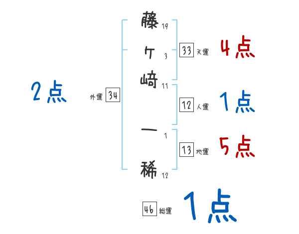 藤ヶ﨑一稀さんの画数の鑑定結果