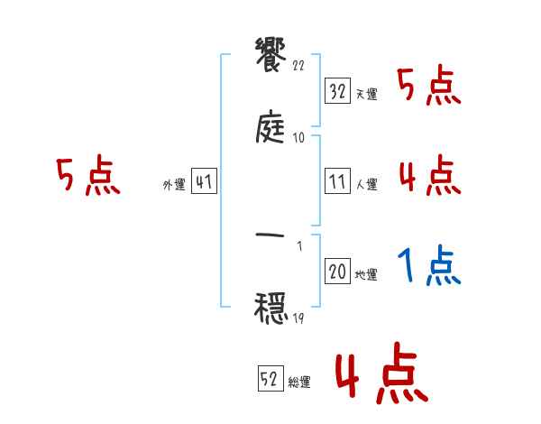 天運![]() | 饗庭一穏さんの天運は32画の5つ星!柔軟性があり成功する。チャンスが多く金運が良い。 家系が持つ宿命的な運勢を表します。祖先から受け継いだ苗字ですので自分の力が及びません。家柄を象徴します。 |