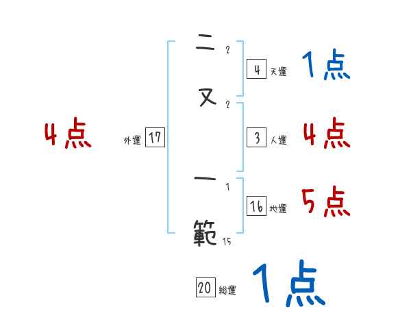 二又一範さんの画数の鑑定結果