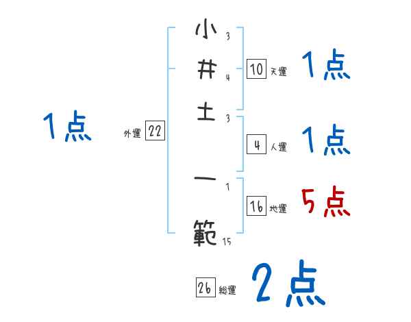 地運![]() | 小井土一範さんの地運は16画の5つ星!人望が厚く大きく発展する。逆転成功が見える。 個性を表す基礎的な運勢です。性格形成や対人関係、行動力など家庭環境に影響されます。主に誕生してから20歳くらいまでの若年期の運勢を表します。 |