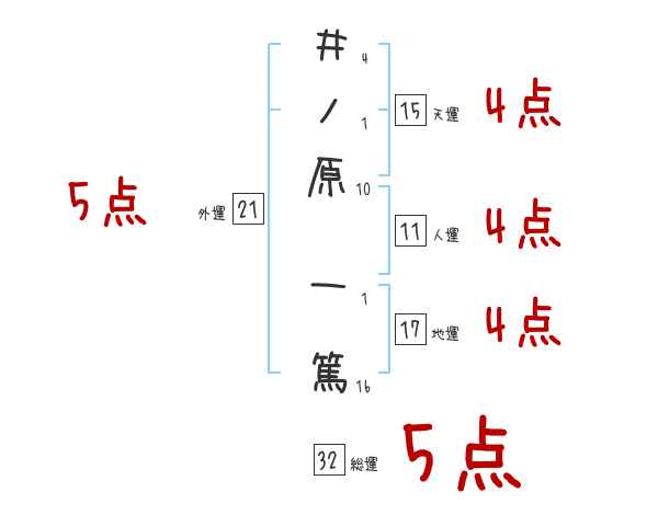 総運![]() | 井ノ原一篤さんの総運は32画の5つ星!柔軟性があり成功する。チャンスが多く金運が良い。 あなたの人生を表す1番重要な運勢です。生涯を通じて影響する総合運となり、主に50歳以降の晩年期に影響を及ぼします。 |