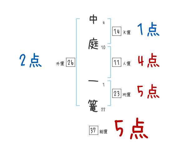 中庭一篭さんの画数の鑑定結果