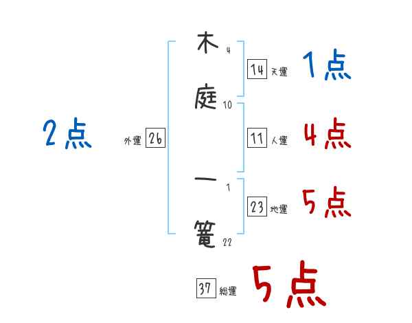 木庭一篭さんの画数の鑑定結果