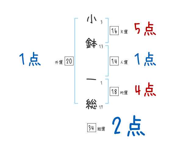 総運![]() | 小鉢一総さんの総運は34画の2つ星!独創性に優れるが、自尊心が強く災難に注意しましょう。 あなたの人生を表す1番重要な運勢です。生涯を通じて影響する総合運となり、主に50歳以降の晩年期に影響を及ぼします。 |