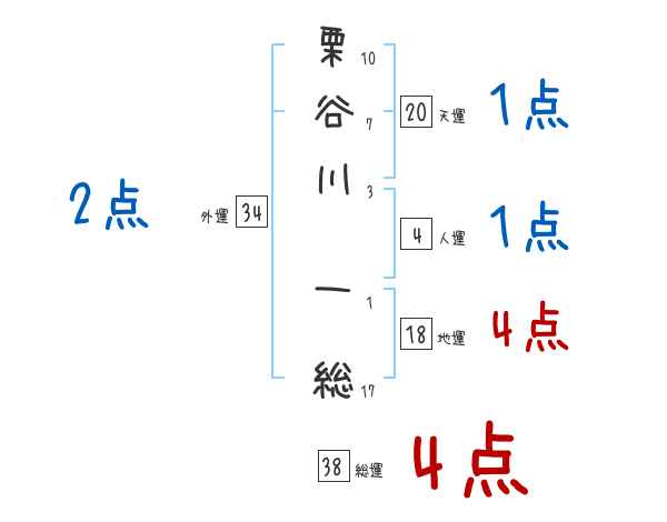 栗谷川一総さんの画数の鑑定結果