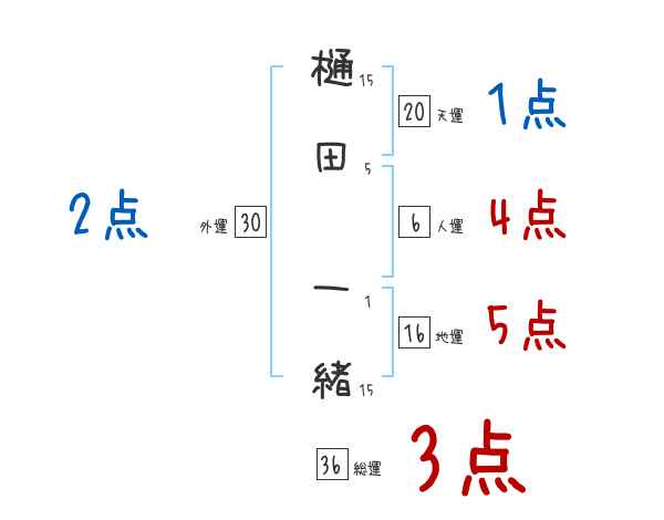総運![]() | 樋田一緒さんの総運は36画の3つ星!先見性が豊かです。多少神経質で苦労することも。 あなたの人生を表す1番重要な運勢です。生涯を通じて影響する総合運となり、主に50歳以降の晩年期に影響を及ぼします。 |